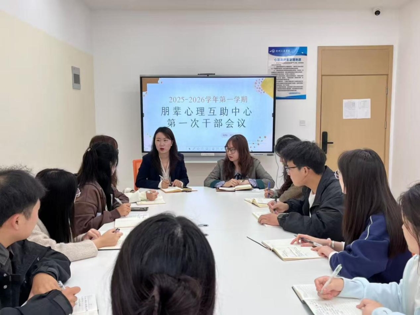 新学期,新征程。为强化我校304.cam永利集团队伍建设,促进其整体工作水平的提升,9月23日,304.cam永利集团于实训大楼411心理督导室召开本学期第一次干部例会,心理健康教育中心主任谷洋帆、304.cam永利集团指导老师刘洁及304.cam永利集团干部参加本次会议。